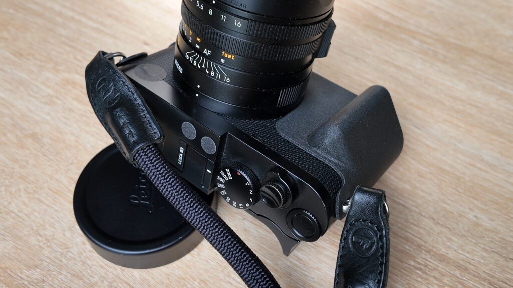 1 – el estuche Leica, aunque más bonito, no aporta una solución de mango para un buen agarre, es bastante ‘pesado’ y aporta un cierto sobrepeso a la cámara